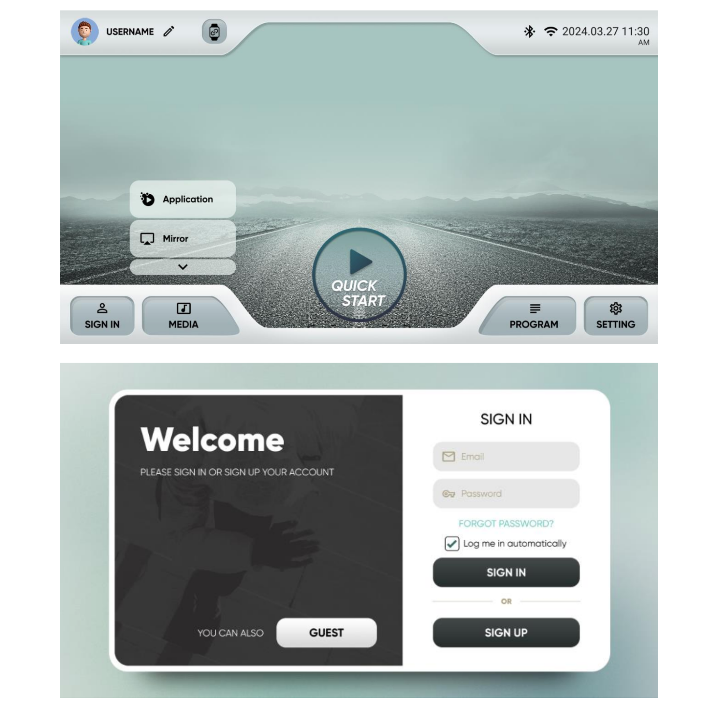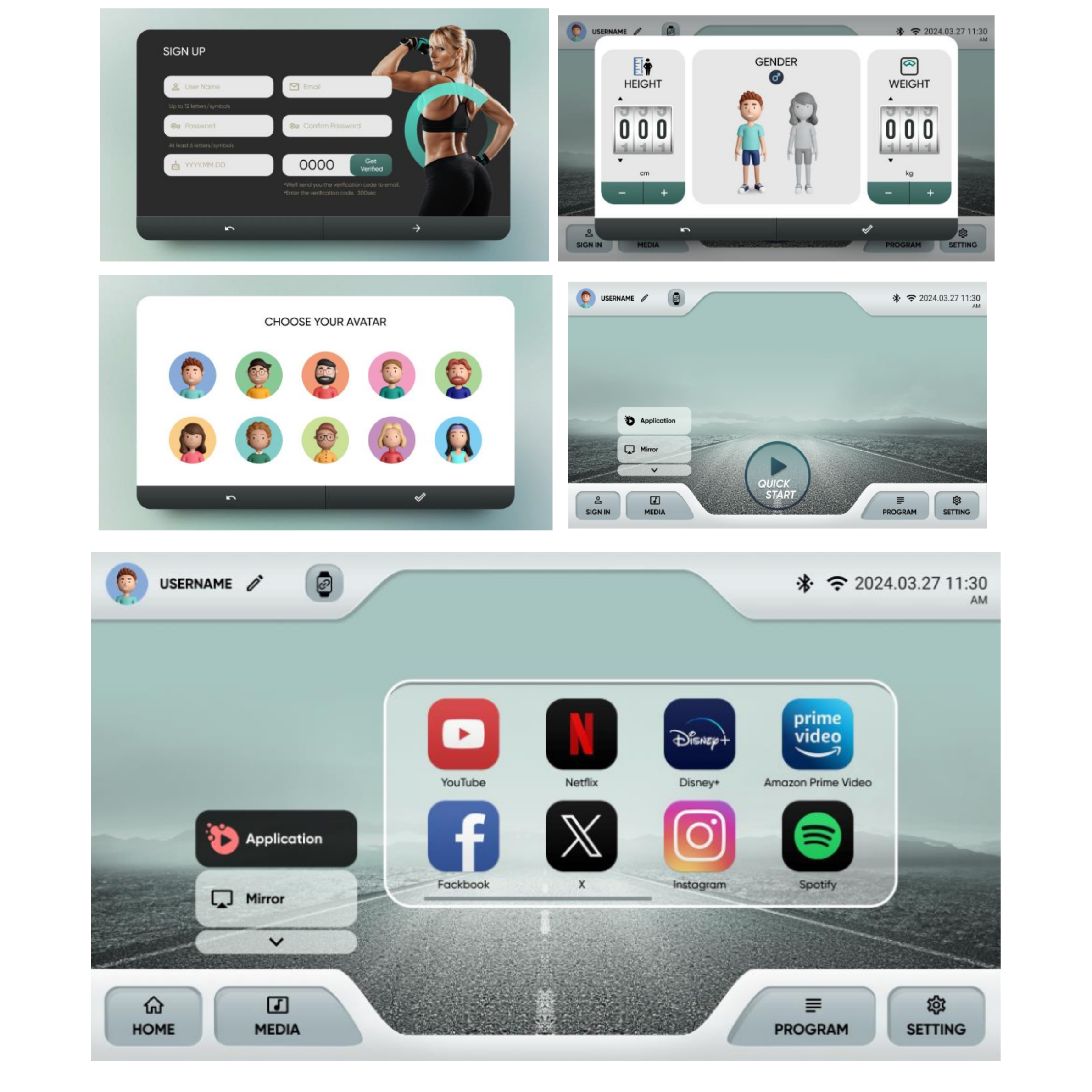 Screen mirroring: Project your iOS or Android device directly to the console for workouts, classes, or media playback.
