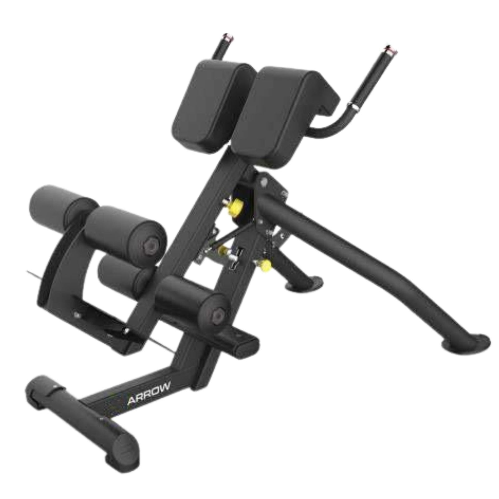 The ARROW Studio Adjustable Roman Chair offers a versatile and heavy-duty solution for your core and back training needs. With the ability to switch between a 90-degree roman chair and a 45-degree hyper extension, this bench allows for various exercises targeting different muscle groups. The easy-to-use pop pin and adjustable pad accommodate users of all heights, while the top-quality padding and upholstery ensure comfort during intense workouts. With its durable construction, this bench is suitable for both commercial gyms and home environments.