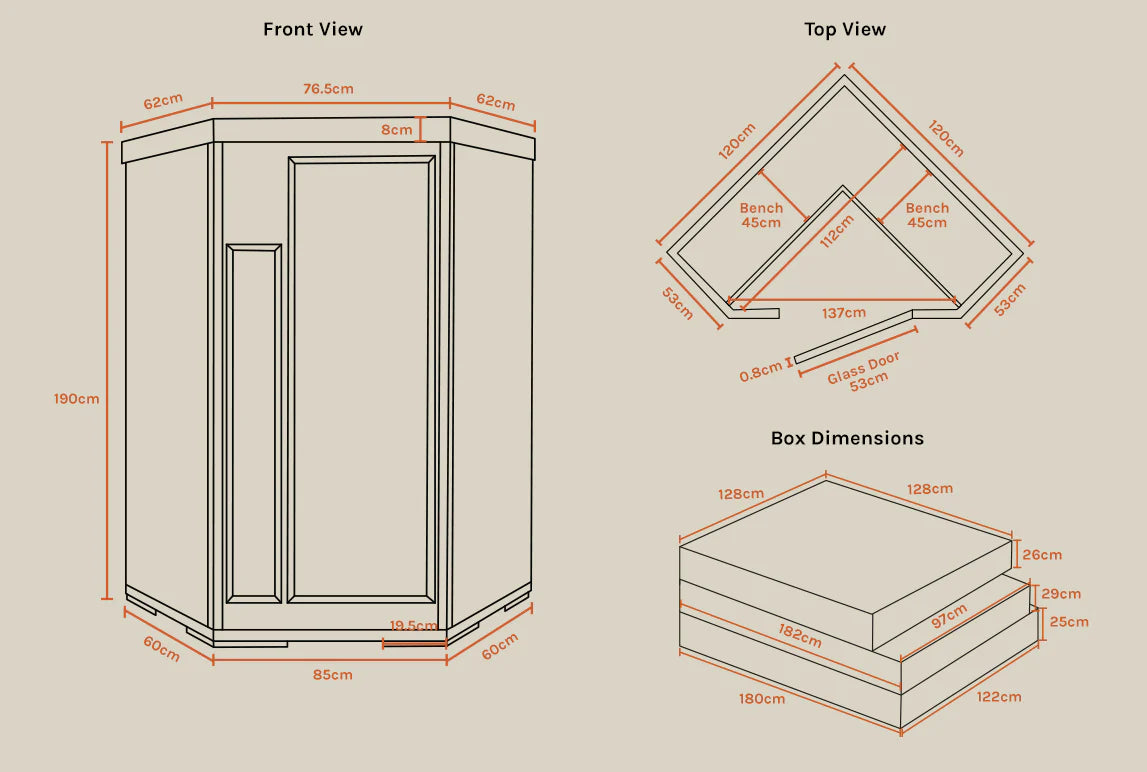 • Capacity: 2 Person Sauna