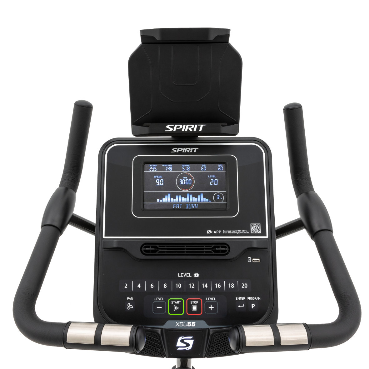 The Spirit XBU55 Upright Bike V2 delivers a comfortable, connected, and versatile workout experience, helping you stay on track to achieve your fitness goals.
