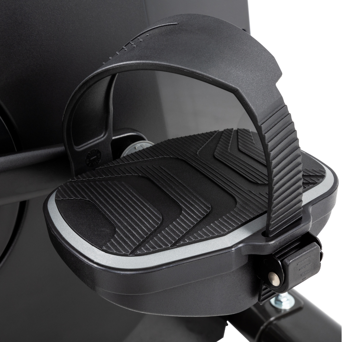 • Seat and Pedals: Large cushioned seat with full adjustability (up/down, fore/aft); oversized self-balancing pedals with fast-latching system.